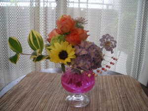 アジサイのグラスブーケ 2011年6月1日 qualia 庭のアジサイがほころび始めましたね。 季節のお花、アジサイを使った 可愛いブーケを作ります。 アシストの 網にビーズを飾ります。 どれを使います? お好きなのをどうぞ! ブランデーグラスに乗せて・・・ 小さめのアジサイをラウンドに置いて お花を合わせていきます。 アジサイ、姫ひまわり、スプレーバラ レースフラワー、ナルコユリ グラスには、カラーゼリーを入れて 華やかに! 雨の日も元気がでそう♥ アシストの網やビーズがオシャレです♥ コメントを残すメールアドレスが公開されることはありません。 ※ が付いている欄は必須項目ですコメント ※ 名前 ※ メール ※ サイト 次回のコメントで使用するためブラウザーに自分の名前、メールアドレス、サイトを保存する。