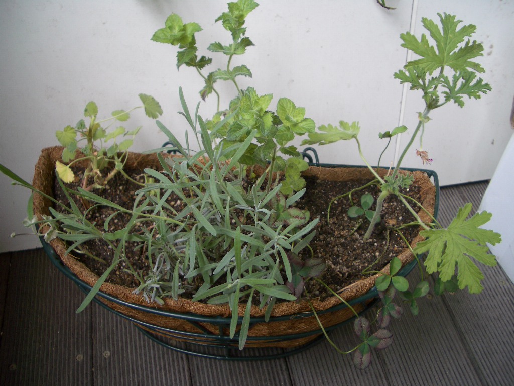 ゼラニウムやランベンダーを寄せ植えにしました。