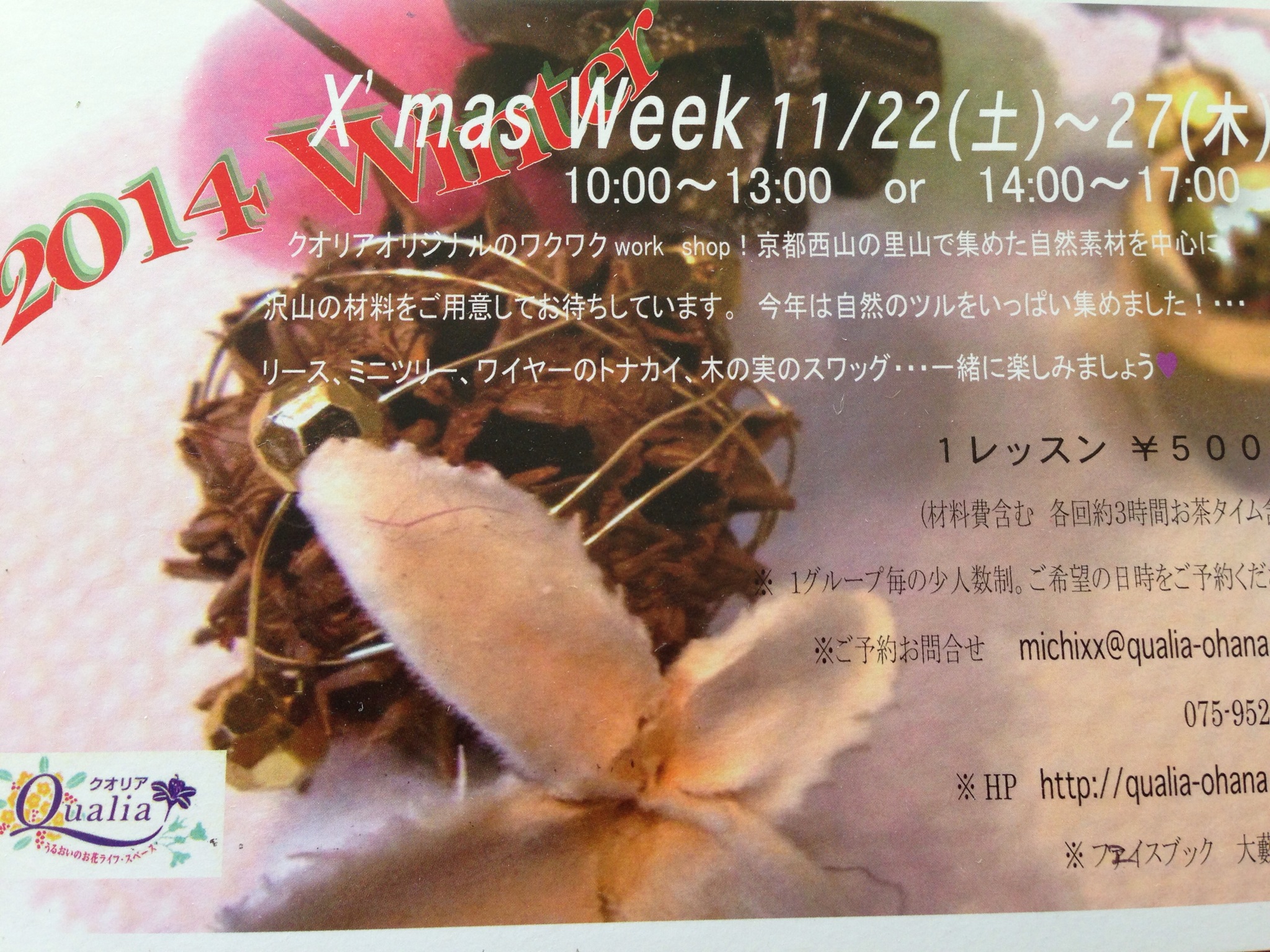 2014 Winter Qualia X’mas Week 2014年11月30日 qualia サロンのイベントです。 この期間は、自然材料などいっぱいお部屋中に溢れさせています。自由にお使いください。 リースやミニツリーがお勧め! コメントを残すメールアドレスが公開されることはありません。 ※ が付いている欄は必須項目ですコメント ※ 名前 ※ メール ※ サイト 次回のコメントで使用するためブラウザーに自分の名前、メールアドレス、サイトを保存する。